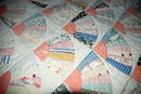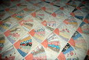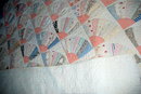 Antique Grandmother's Fan Pattern Quilt. It is completely had made. The condition is rough with tattered and torn pieces of fabric. It is need of restoration or perhaps it could be used as project. It measures 80" x 64".