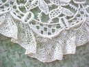 Offering this beautiful antique ladies lace collar; measures 18 inches in length x 3 inches wide. Soft off white color; beautiful open floral designs with fine mesh lace ruffle edge. Good++ condition, some age darkening to mesh lace and a few teeny pin holes, no holes or stains on open lacework. Freshly clean and ready for your collection - these collars look lovely matted and framed!