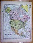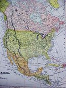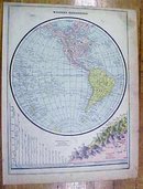Offering this nice old map of the Western Hemisphere on one side and North America on the other. This map comes from the Peerless Twentieth Century Pictorial Gazetteer. Note the attractive colors, and clear markings! This map was published / printed by Crowell Publishing Co, New York, 1902, no copyright date on map, however this is an authentic map from 1902 - not a reproduction. The map measures 10 1/2 inches tall x 13 1/2 inches wide, good+ condition, no holes some minor margin tears, some slight foxing around the outer edges mostly, some small smudges inside the black line parimeter noted, some very minor age darkening also. Wonderful colors and details. These old maps are excellent for framing. A handsome piece of history for decorating your home or office!