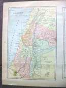 Offering this nice old map of the island of Puerto (Porto) Rico and the country of Palestine on one side and the Canadian providences of British Columbia and Manitoba on the other. This map was published / printed by The Crowell & Kirkpatrick Co, Springfield, Ohio, 1901 - this date showed only on the title page, copyright date of 1895 on the Porto Rico side and 1897 on the British Columbia side; this is an authentic map from 1901 - not a reproduction. Measures 13 1/2 inches tall x 10 1/2 inches wide, good++ condition, no holes or tears, light age toning, one small spot the is a little darker on the Palestine side and in the upper corner on the British Columbia side, does not really detract. Nice colors and details. These old maps look really great matted & framed. A handsome piece of history for your home or office!