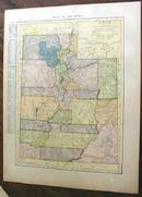 Offering this 1904 C S Hammond map of the state of Wyoming on one side and Utah on the other side. This map was printed by C S Hammond & Co, New York, 1904. Measures 13 1/2" x 10 1/42" (actual map size is 8" X 11"), good condition, no holes or tears; a couple faint spots on margin that will not show when matted & framed, does not affect map, great details and very nice colors. These look really nice framed. This would be a wonderful gift!