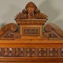 Or Best OfferWe are pleased to be offering today this unbelievable monumental Victorian marble top sideboard that is 105 inches tall. It dates from the 1880s and came out of a home on the cape of Massachusetts. When it came in, it needed the bottom shoe supports that rest on top of the marble on the back to hold up the first shelf. There is a slight coloration difference, but they are repaired and structurally sound. The overall size is 67 inches wide, 24 inches deep at the base, 37.5 inches high to the marble, 68 inches high from the marble to the top, and an overall height of 105 inches. The mirror glass is 23 inches wide by 35 inches high. This gorgeous extra-large piece of craftsmanship from the Victorian era has three small drawers across the top of the base, three center drawers of various heights, two doors, burl walnut panels, and cast brass hardware. The two outside drawers on the top row had the double handles removed, plugged the holes and a single pull in the center as a replacement. I am unsure why this was done, but it has been done. The escutcheons have been replaced on the two doors as the originals were missing. The columns on the outside edge are carved and diamond notched. It has a stout base with plenty of castors to hold up the support. On top of the base is a white and gray grain marble that is rectangular. The back is a piece of workmanship by itself. Starting from the bottom up, it has a triple raised panel burl panels underneath the shelf support. Above the shelf is a mirror with fruit trees carved into both sides of the mirror. There is plenty of button edge, routed carved shelf supports, pillars, big round balls, and notch molding. There are two cut out fretworks on top with the right-hand side one not being completed as the slight incise carving was not performed and it never had a round button it. The slight difference gives this piece a wonderful story. It has burl panels on a broken arch top with balls in the center. It has a hand carved floral crest on top that oversees the entire sideboard. The only negatives are the mirror has some silver loss in the middle, some finish loss here and there from years of use, hardware on the top drawers and otherwise it is in good condition. It is a great piece for a commercial setting or a Victorian home. Shipping starts at $525 for a driveway delivery in our normal New England delivery area. Outside the normal area will incur additional delivery charges, which could add on especially if you're on the West Coast. Please contact us prior to purchase with your zip code to obtain a quote for additional shipping outside of New England.