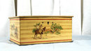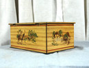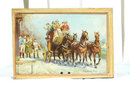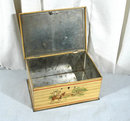 Antique kitchen tin with locking mechanism. There is coaching theme lithography on all sides with exception of the bottom.