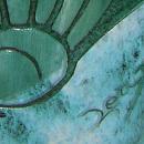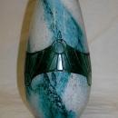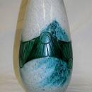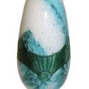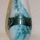 Our client's fine Art Deco period glass vase with bubbles and oxides, circa 1930, by Legras et Cie, features an etched and green enamelled decorative band across the middle depicting stylized comets. Measures 8.75" high and 4.5" across and weighs 2 lbs. 8 oz. Condition is excellent. There are a handful of noticeable scratches close to the lip on one side as seen in our images below.