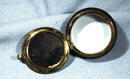 Art Deco Porcelain Jar or round container with brass framed lid that has a mirror on the inside.