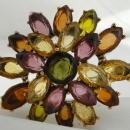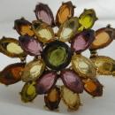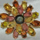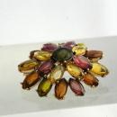 Autumn Colored Flower Faceted Rhinestone Glass Brooch by Monet