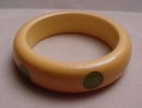 Bakelite Bracelet Cream color with 6 green dots