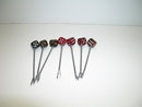 Colorful vintage Bakelite dice Cube with 7 dice picks for the bar or hors d'oeuvres or whatever. It is in excellent condition with no cracks or chips. the cube measures 1 1/2" x 1 1/2" x 3 1/2" with the picks.
