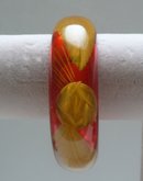 Fabulous Raspberry Applejuice reversed carved feather bangle in very good condition with no cracks or chips. Really special!! It measures 7/8" wide and the inner diameter is 2 1/2". This is Bakelite at its best and most fashionable!!Guaranteed vintage