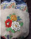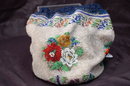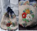 Beaded Drawstring Purse Bag -antique flowers & crochet