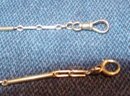 A fine American 14-karat yellow- and white-gold watch fob, well-fashioned and in excellent condition, the claspes andbars in yellow gold and the fine links in white. Circa 1925.