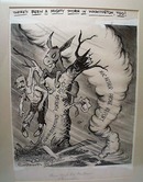 Bill Sanderson Political Story Board. This Political Story Board is done in Black & White, Marked SE Edition & Signed. It reads: There's Been a Mighty Storm in Washington Too!, and then on the picture of the tornado reads: MacArthur Probe Report, Acheson is on the man in the tree with the donkey, and on the tree trunk reads Administration's Foreign Policy. This has been framed. Approx 24 x 19 1/4" with the actual picture being approx 17" x 12, excellent condition.