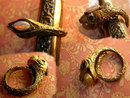 This vintage coiled snake ring has a faux dragons breath opal in the center of his head and a large pearl in his mouth. Two green eyes peer out and protect all who wears this formidable serpent. Scales go all the way around the ring with great detail . The ring is a size 6 1/2 and is sturdy and well made. VintageSparkles offers Layaway on all our pieces regardless of which site it comes from.All layaway payments will need to be in the form of a check or money order only. Please remember that vintage & antique items are not mint, nor are they perfect but they sure are full of old history and charm. Please use photos to make your decisions and read our policies prior to buying so you can have an excellent experience with us.