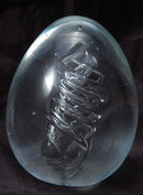 Vintage Blenko Glass paperweight with spiral twist design on the inside of piece. It measures 3 3/8" tall and 2 1/2" diameter. In excellent vintage condition.