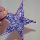 Blown Glass Starfish Paperweight Purple & White Signed and dated. However I cannot make out the signture. It is 5.25" across. It is about 10 onces unboxed.