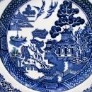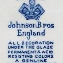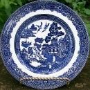 Blue "Willow" plate, made by Johnson Brothers of England. Crown mark dates from the 1960's. Measures 6"d. No chips or cracks, very little surface wear. Have 11, priced separately, but happy to combine shipping. Just contact me before ordering. Inglenook Antiques...Established 1989.