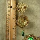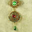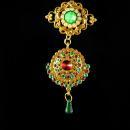Bohemian Brooch Gypsy double drop Chandelier rhinestone Coro assemblage pin gold filigree green red golden topaz pave setting