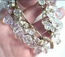 Simply an elegant, sparkleing and gorgeous bracelet! This is just an awesome piece of Juliana design! As is normal, it is not marked, but has all the ear marks of a wonderful Delizza&Elster piece. There are examples of similar bracelets in other colors that have been confirmed as Juliana and I am sure this is a great looking Juliana. There are large, "headlight" clear rhinestones set with groups of smaller rhinestones in a gold plated setting. There are 22 clusters of faceted crystal beads connected to rings in the setting. If you lay it out and examine it very closely and count, I believe there may be one large and maybe one or two small crystal beads missing. But, with all the glitz and flash and movement, you can tell it at all. It is approx. 7" long and approx. 1 1/8" wide. It has the 5 link back with etched connectors and fold over clasp and a safety chain. The shipping fees quoted are for priority/Insured in USA.