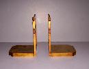 This is a nice pair of brass bookends. They are 6 1/4 inches tall, about 5 inches wide and 4 1/2 inches in depth. These two bookends would make a lovely addition to your home.