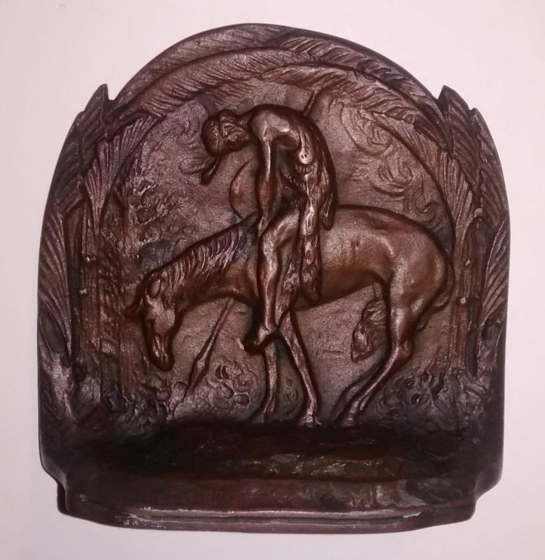 Vintage Bronze Bookend Indian on Horseback The End of the Trail Ca. 1928 Single