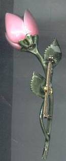 Brooch/1970's Enameled Flower/Rose Bud