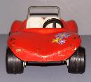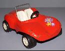 This is a cute little buggy. It is 7 inches long, 3 inches tall and 4 inches wide. It has three flowers on the front. This car would make a lovely addition to your home.