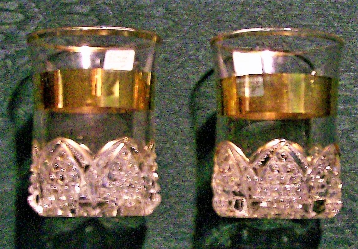 Antique Duncan Button Arches Tumbler Pair EAPG Gold Band