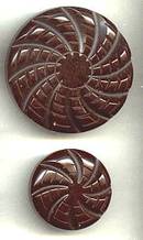Here is a winderful pair of "mother/daughter" wire shank buttons. They are a warm dark chocolate brown molded plastic. The design is a pinwheel. They are substantial. The larger one is approx. 1 3/4" across and approx. 3/8" thinck. The smaller one is appeox. 1 1/8" across and approx. 1/4" thick. They could use a good clean and/or polish. Very little to no wear. The shipping fees quoted are for first class/No insurance in USA.