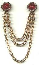 I believe this is a vest or jacket chatelain button closure. They are reminescent of the closures for some of those little boxy Channel type jackets of the 60's. The red faceted plastic buttons are made to mimick red glass moonstone buttons. There is oxidation to the metal edge on the buttons. The chains are fine. The buttons measure approx. 5/8" across and the shortest chain is approx. 4" long. The shipping fees quoted are for first class/No insurance in USA.