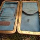 C1894 FUR Covered CIGAR CASE gatefold feature _ Clean inside_ WITH FLINT Strike in Excellent Condition. ORNATE Gold Gilt frame inside edge over Solid Brass metal_ Rare Find !
