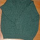 This cable knit sweater was made in Ireland using the traditional Aran patterns, trellis and rope patterns. It is very thick and extremely soft and the weave is loose so you feel room to move without restriction. So comfy you will probably want to sleep in it. It is dark green with flecks of yellow and other colors here and there but the flecks are not overly done. It is pre-owned but the condition is excellent. No holes or snags. It is clean and ready to wear.