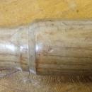 Offering this quality vintage, 1.5" carpenter's slick/chisel (with the cranked or bent neck designed to give user more clearance in certain applications) which is not marked by the original maker. Buck Brothers did make some cranked neck slicks in the 1960's to 70's era, but I am not sure this chisel is made by them. Although this carpenter slick has light staining and pitting on the steel surfaces, it is in mostly useable shape on the bottom cutting edge area with only minor pitting on less than 10% of the bottom surface. The edge is sharp, could use some light honing. The steel is 11.5" long overall, and with the handle is a total of 16.3" long. The handle is solid hardwood a good leather ring end cap, solid, no damage, and fits the socket tightly. A good useable heavy duty chisel!