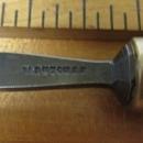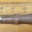 This is a nice clean antique 5/32" (.16") wide x 9.5" long tanged heavy duty mortise chisel marked "W. BUTCHER" on the steel. The steel length alone is 3.75". Perhaps the best quality tool steel available in the late 1800's, this is a fine example. It came with a group of 19th century English chisels that I purchased together, with the British export symbols also marked on the steel opposite the maker's mark (a circle logo with a arrow with the point, pointing at an + shaped symbol). Nice quality cast steel, good solid hardwood handle, sharp and ready to use. The handle is very solid with a few dings, a slight grain separation noted but is not cracked to the end or ferrule.