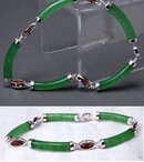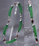 Fabulous and very fine Chrysoprase & Garnet Sterling Silver Links Bracelet. The stones are all genuine and the bracelet is in excellent condition. The bracelet is 8" long. The Chrysoprase is a beautiful shade of Green Apple and is a combination of opaque and translucent. Each of the stone bars are 1" long and 1/4" . wide. There are 4 set faceted ovate garnets placed between each of the bars. It is a stunning piece and in mint condition.