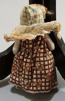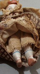 Cival War Era porcelain Doll. This is a full jointed porcelain bisque doll marked 2120 on the back of head. The front section of head has been broken and reglued, see photo it looks like a line on her right eye that appears to have been done because her hair and hat are attatched to a hollow head and someone tried to take them off unknowingly and broke the head. The rest of the body appears to be great, and the underclothes are in extra special condition. Aprox 3 1/2"" Clothes are nice, this may look larger than it is. There is a stand behind doll that is not included.