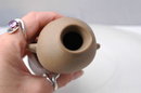 Comical Buddhist Monk by Kato Kogei Japan Hand Painted Serving Bottle. I imagine it is either a Sake bottle or for soy sauce. The opening has a spout. It is of clay pottery that is totally glazed on the inside. The features are hand painted. He really is cute as well as very unusual. The condition is excellent. The tag on the bottom is partially torn.
