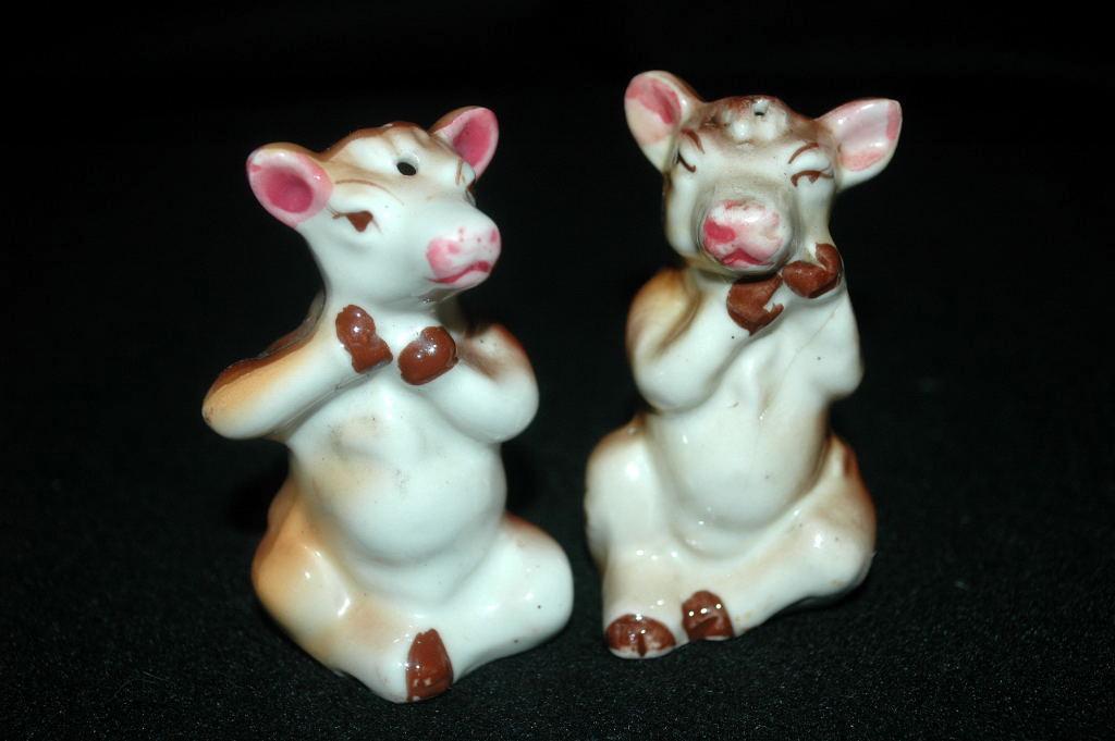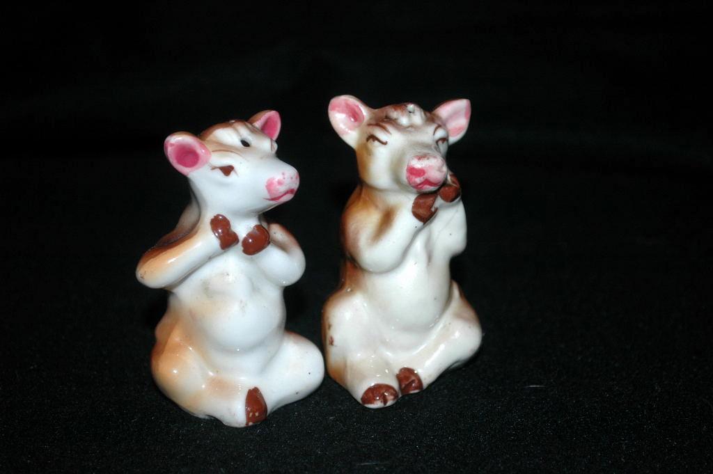 Cow S & P set. They are just over 3" tall and come with cork stoppers. The are both marked Japan on the bottom