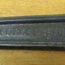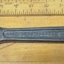 This is a top quality early style Crescent wrench marked "MFG. BY CRESCENT TOOL CO. JAMESTOWN N.Y. 10 IN DROP FORGED STEEL MADE IN U.S.A.". No rust, some very minor darkening on the bare metal surface, very little wear, jaws are straight and parallel on this heavy duty model adjustable wrench. We note a few owner's stamped letters on each side, "R T". The jaws are almost 5/8" thick at the widest point. 1.1" capacity between the jaws. Weighs 1.3 pounds. A favorite heavy duty wrench among many!
