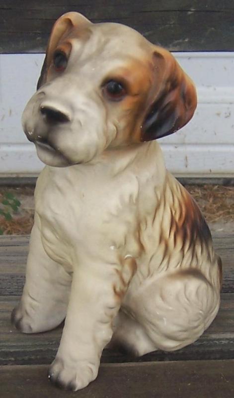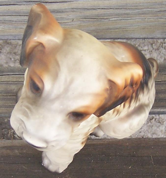 Vintage Large Brown Dog Figurine. Figurine is 6 1/2" high. 2 1/2" across and 4 1/2" deep. Good condition.