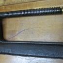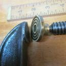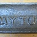 This is a nice clean and straight 8" capacity, heavy duty C-Clamp marked "DAYTON 8 IN", with raised lettering and number. At one end of the threaded screw is a nice brass swivel pad (in great shape) and at the other end is the butterfly wing shaped that measures 3.4" wide and has a "D" in a circle on one wing and a "C" on the other wing. The clamp is 13.5" long overall x 6.5" wide, and the screw diameter is .75". We note some pitting and minor dings, but no damage, straight, not bent, good threads clean, not rusty.