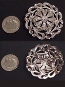 If you have ever seen these old deco marcasites brooches up close you will know that no matter what you wear it with you will look like you are wearing brilliant diamonds. This one measures 1 ¾" wide and is in excellent condition. Brilliant silver and sparkle make this a must for all wardrobes.