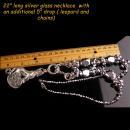 Designer Rhinestone Panther necklace - BIG cats eye Cat leopard - Mercury silver glass necklace - vintage panther womens animal lover