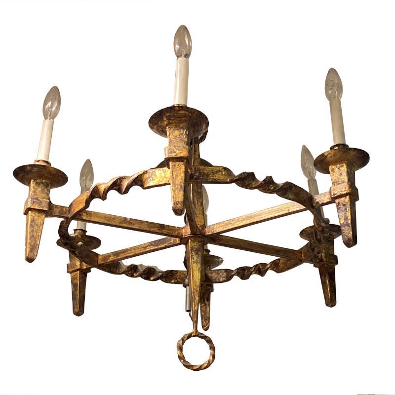 Medieval Renaissance Style Rustic Gilt Iron Chandelier