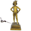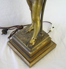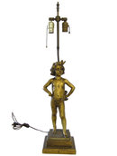 This lovely antique gilt bronze cupid figurine features its original gilt wooden pedestal and was made into a lamp sometime in the early to mid twentieth century. Entire lamp measures 32.5" high, 7.25" wide/deep and weighs an estimated 20 lbs. Lamp is in fine working order. This item resides in Norwalk CT 06854 and may be seen by appointment. Thanks for visiting. Please let us know if you have any questions or comments.