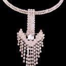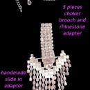 This is gorgeous one of a kind costume jewelry choker and brooch are as dramatic as they come. Loaded with sparkles. The choker is flexible and stays the same shape. The hand made slide that goes on it holds this fabulous fringe brooch. Definitely an eye catcher and compliment getter!