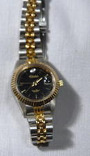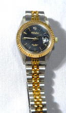 This is a beautiful timepiece. Inspired by the expensive luxury watches, this watch has style and function. Beautiful two-toned case and bracelet will fit 7" - 8" comfortably. The dial is a beautiful dark metallic blue that is accented gold tone hands. The bezel has a fluted gold tone edge.
