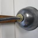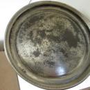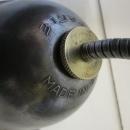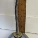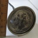 This is a nice clean oil can with a 4.5" diameter base, 10.0" tall overall. It is marked "EAGLE MADE IN U.S.A.." on the lower body near the threaded brass nut that holds the flex tube spout in place. It is sheet formed heavy gauge steel on the body, and spring steel bottom, it has a brass threaded cap that snugs down tightly in place and has a good seal gasket. It's in good+ condition with very little pitting, (mostly on the bottom, underside), no rust, very study gauge steel so only a few small dents on the body, the spout tube is a little more flexible at the bottom than up further, but overall the tube and spout are functional without leaks. The end spout has the factory curve at the end and is in nice shape, well attached to the tube . A nice clean oil can!