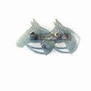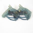 Vintage blue Cellluloid signed double HORSE brooch Uncas