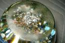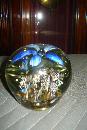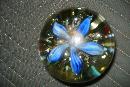 Early twentieth century glass paperweight with blue opened flower, multi-colored floral surround at base.