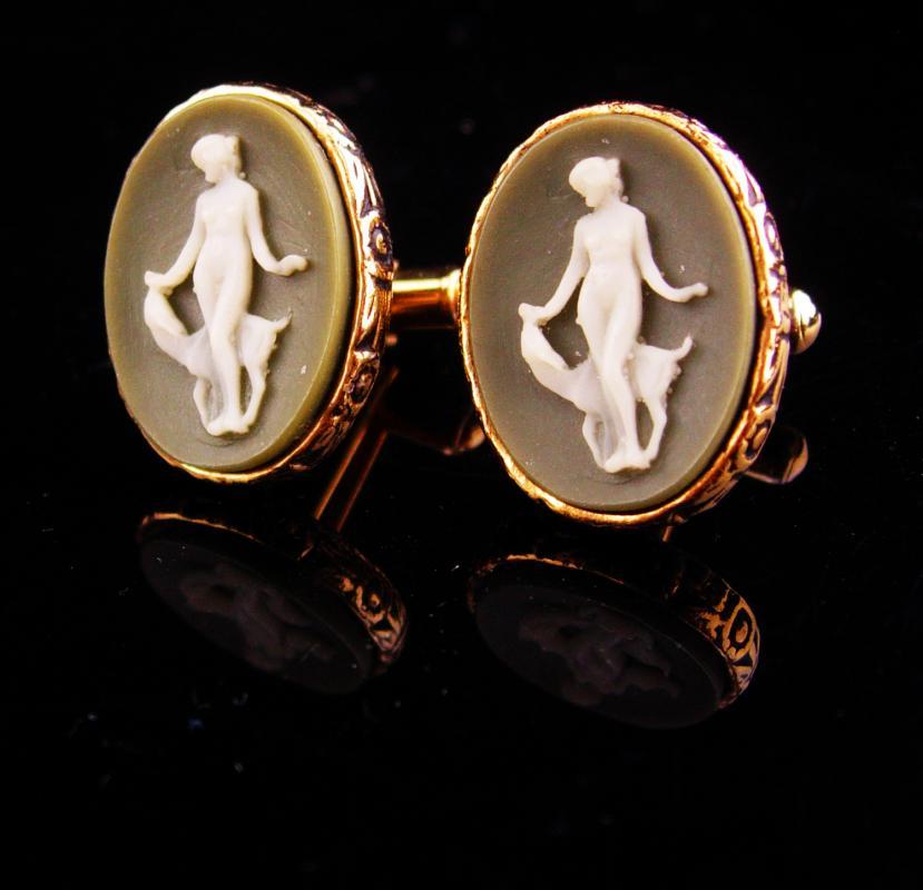 Erotic Nude Cufflinks / Art deco Saluki dog / Goddess / Vintage Greek Mythology / Men's Incolay cameo / dog Cuff links cameo